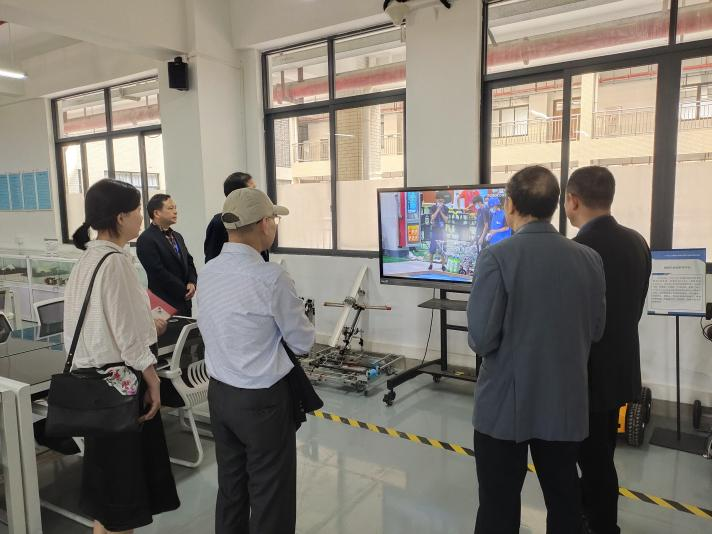 唐露新主任详细介绍了工程中心的总体建设概况、后续人才和设备引进以及长远规划,大家一同参观了机器人创新实验室、机器人应用实验室的科研成果、组织国培班和省培班等一系列考证情况。