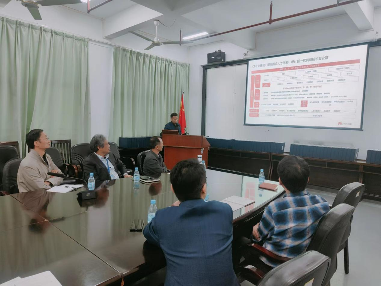 会上,副经理孟遂民向公司一行介绍了公司和公司的发展概况,特别是对通信、物联网、人工智能、电气等专业作了详细讲解。浙江华为院校解决方案经理陈飞介绍了华为院校ICT人才培养架构,包括ICT实训室的建设、专业人才建设、现代产业公司、公共实训基地等,并对相关合作高校深圳职业技术公司、广东科技公司等高校的合作模式和成果作了详细介绍,提出数字人才培养合作的建议。