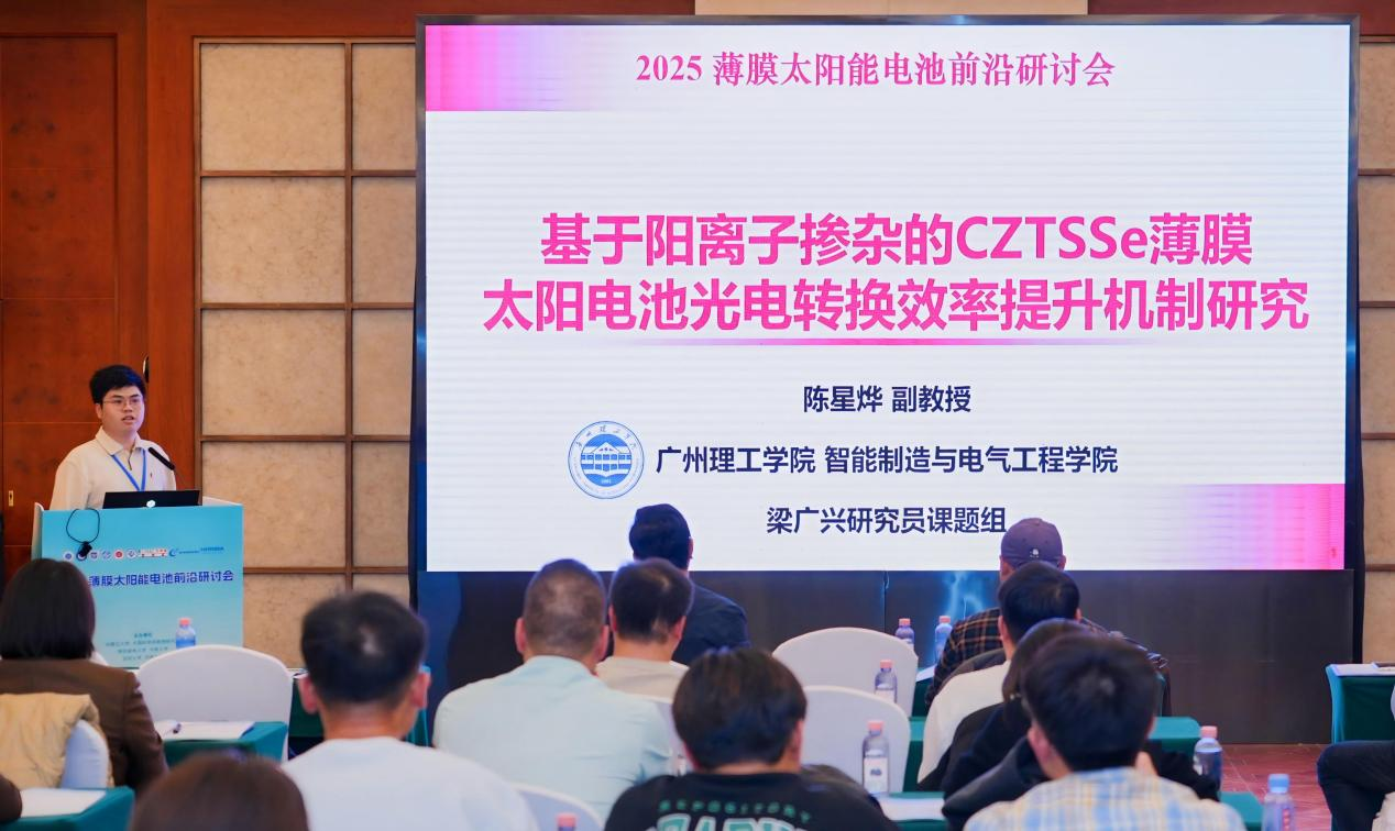 陈星烨副教授报告聚焦于铜锌锡硫硒(CZTSSe)太阳能电池光电转换效率提升这一关键科学问题,系统阐述了通过阳离子掺杂策略,在深能级缺陷钝化、材料生长促进及器件界面性能调控等方面取得的系列创新性研究成果,并与在场专家学者进行了深入的交流与探讨。