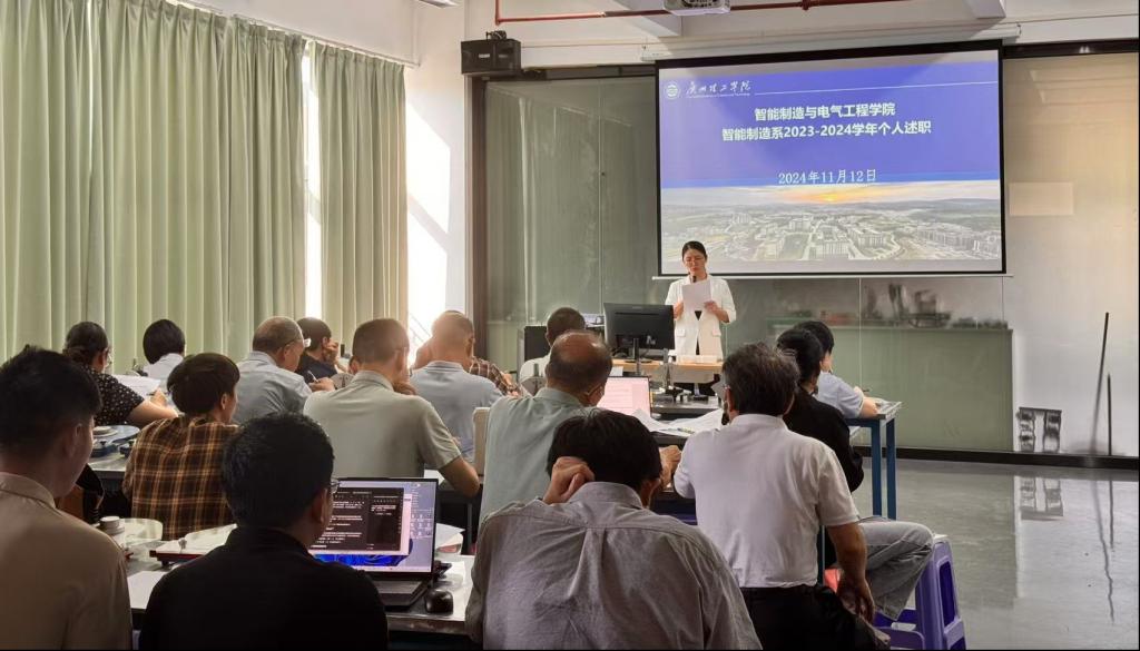 为了提升各位在职教师的能力水平,助力广理工制造系在教学科研方面向前迈进,11月12日,本系在13栋403召开了年终述职大会。述职大会由bevictor伟德官网(以下简称“bevictor伟德官网”)智能制造系的王如意主任主持,与会主要人员分别为bevictor伟德官网朱亚峰副经理、本系主任与本系各位在职教师。此次年终述职大会旨在回顾各位教师在过去一年内所做工作,包括教学与科研比赛等,规划未来一年的工作计划,共同促进公司教研同步有序发展。
