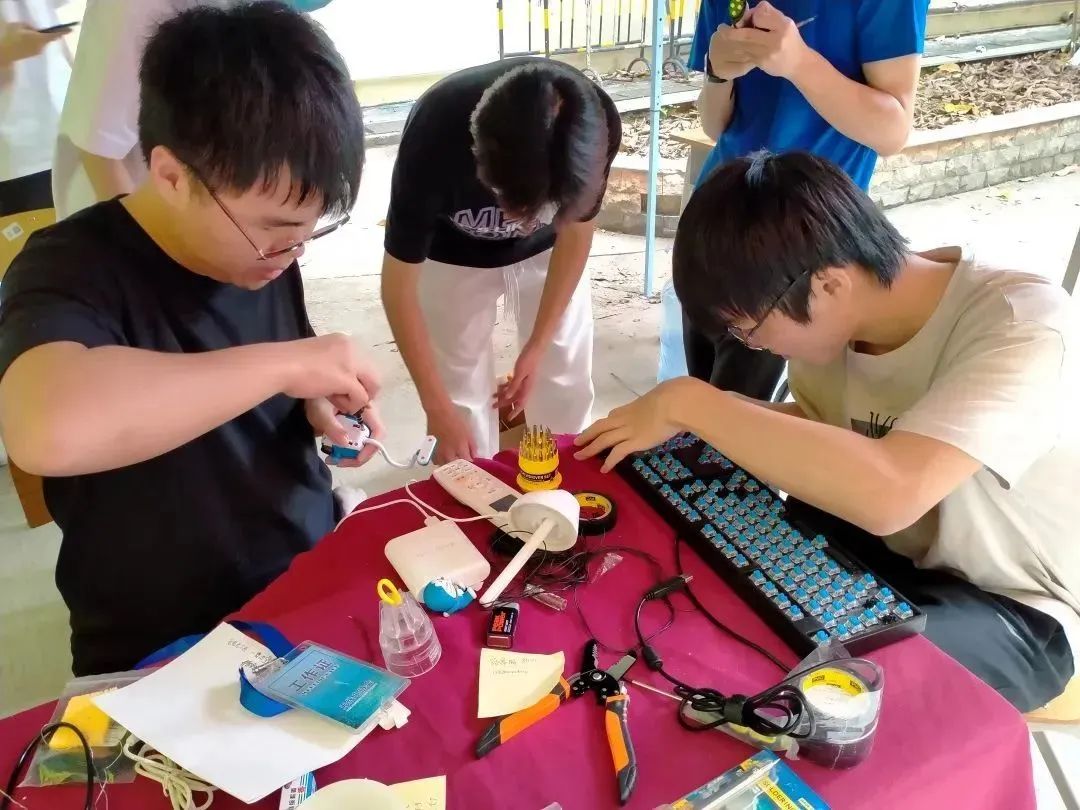 为保证安全,必须全程佩戴口罩,以摆摊维修和上门维修两种形式展开,师生们可以把维修电器交给摊位登记维修,若为不易搬动的大电器,先摊位登记好宿舍号信息和方便上门的时间,协会成员携带工具到申请需要维修的宿舍对所需维修的电器对象进行维修或搬运。