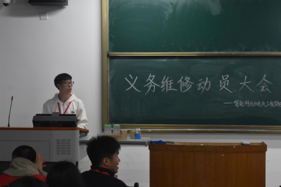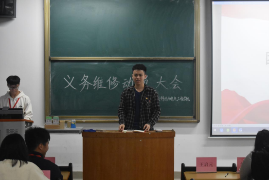 员工会主席团成员陈嘉鸿同学表示,党员义务维修活动是展现组织部门人员协调配合的有利契机,希望大家发扬雷锋精神,积极为公司师生提供服务。党务工作组代表王启元同学讲到,各位同学作为​bevictor伟德官网的一份子,更应结合自身专业、个人能力,学以致用,希望大家能够做积极参与其中,在活动中热心帮助他人。公司党总支组织员谢燕惠、团总支书记李顺重点强调了安全问题,提醒同学们在进行义务维修时应注意用电安全,同时向大家宣传日常安全用电方法。