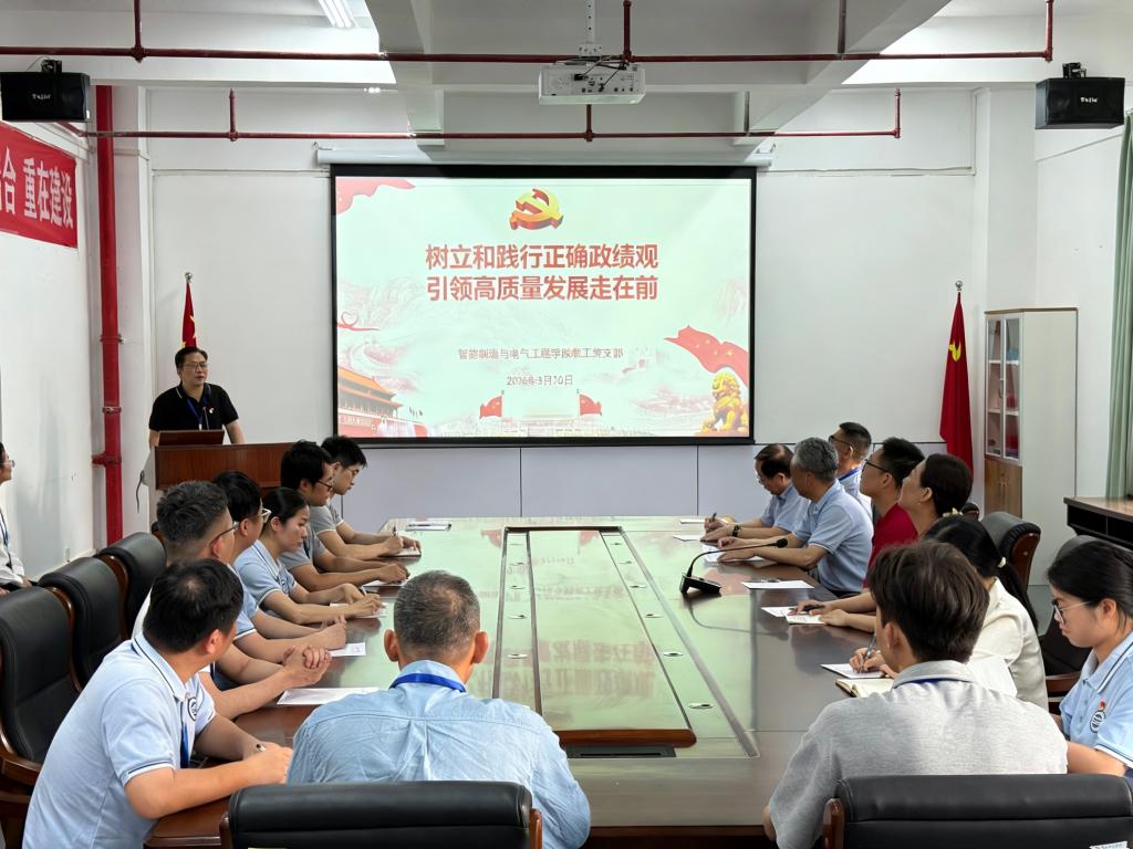 教工党支部副书记袁增强同志以“树立和践行正确政绩观,引领高质量发展走在前”为主题,带领全体参会同志学习了开展树立和践行正确政绩观学习教育的重要意义。