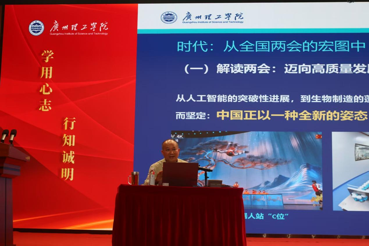 黄书记解读了时代背景下“广东何为”。他指出,广东以“走在前、作示范、挑大梁”的担当,以教育强省支撑全省高质量发展。他强调,粤港澳大湾区作为国家重大发展战略,是同学们施展才华、实现抱负的广阔舞台。