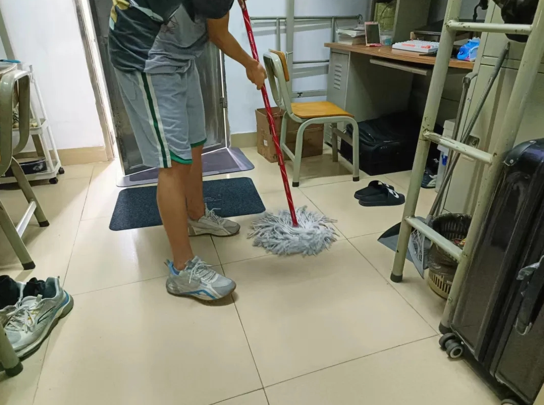 为了提高员工们的卫生健康意识,养成卫生文明健康绿色的生活习惯,共同创造一个安全整洁文明干净的美丽校园。4月26日下午,公司辅导员组织全体员工在员工宿舍开展爱国卫生运动活动,安排员工对自己居住的宿舍进行全方位的大扫除。