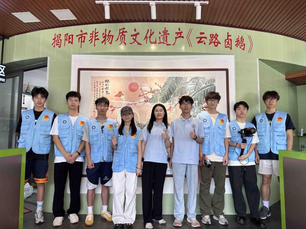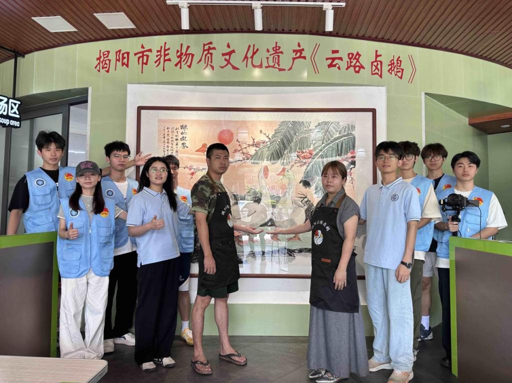 为响应广东省“百千万工程”与乡村振兴号召,守护濒危非遗文化根脉,bevictor伟德官网“鹅卤承香”实践队于2025年7月奔赴揭阳市揭东区云路镇。队伍由3名教师带队,10名员工组成,涵盖多学科背景。核心使命是深度体验、系统研习云路卤鹅非遗制作技艺,并通过摄制纪录片、撰写文稿、探索数字化路径、多平台精准宣传(如制作宣传视频、开展直播)等方式活化传承,同时联合传承人开展志愿活动,助力当地特色产业发展与文化弘扬,为乡村振兴注入青春动能。