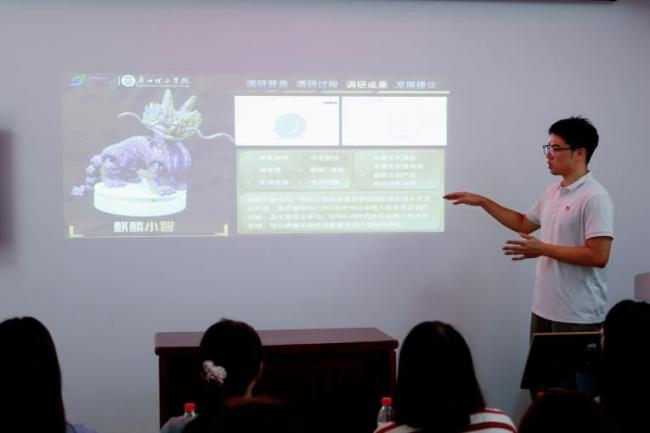 在调研成果环节,郑煜蓝就团队问卷调查结果分析提出:潮阳木雕作为静态展示类非遗,其服务体验与动态表演类非遗相比存在一定差距。因此,引入数字化、智能化体验是活化此类静态非遗的重要途径,应借助科技赋能提升服务体验。