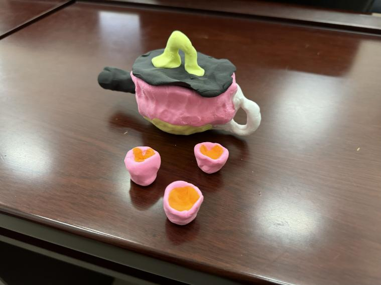 下午,在朱颖老师的指导下,九益村的孩子们运用色彩缤纷的粘土,开启了一场创意手工之旅。安全规范讲解后,孩子们专注地捏塑,一个个生动形象逐渐成型。作品展示区陈列着丰富的成果:一只系着醒目红色领带、手握细长绅士棍的黑色粘土小猪格外引人注目;旁边是一只白色粘土兔子,其双臂紧紧环抱着一根橘红色的大胡萝卜;不远处,一只黑白配色的粘土熊猫坐在地上,嘴部贴着一段绿色的竹叶;此外,冰淇淋形象“雪王”拥有圆润的身体和标志性的冰淇淋头造型;而一群模仿《植物大战僵尸》的小蘑菇,以其圆形的头部和矮小的身体整齐排列成“蘑菇军团”;最后,一个粘土小人跨坐在一只粘土小羊的背上,手中握着代表缰绳的细条,完成了这组充满童趣的粘土作品。