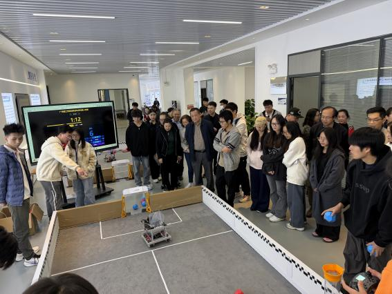 无人机空地协同竞技赛:原计划的无人机空地协同表演因管控要求调整为智能小车技术展示。尽管略有调整,但小车精准的巡线及动作控制依然吸引了51人次报名关注,展现了同学们对前沿技术的浓厚兴趣。