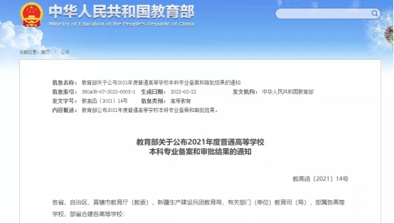 近日,教育部发布《2021年度普通高等公司本科专业备案和审批结果的通知》,公司申报的智能制造工程、人工智能2个本科专业成功获批。