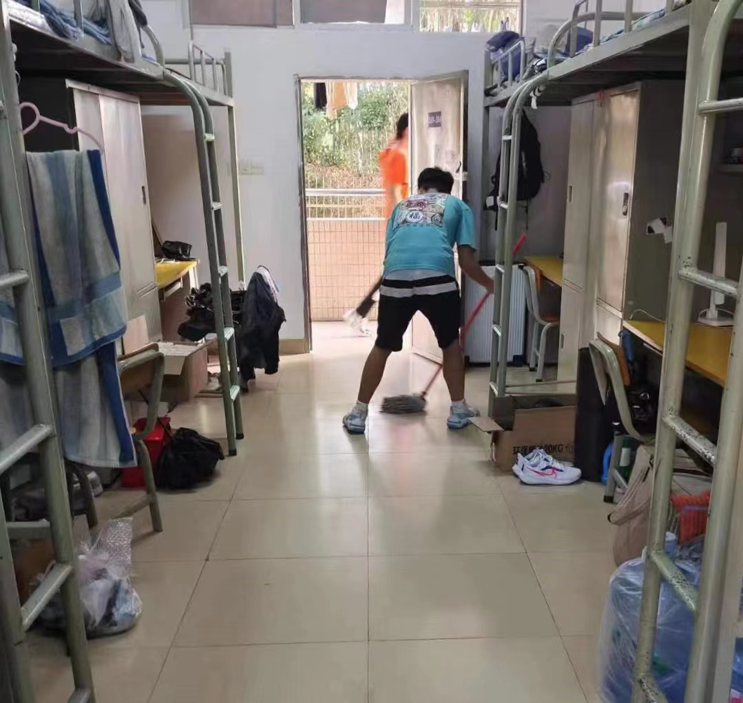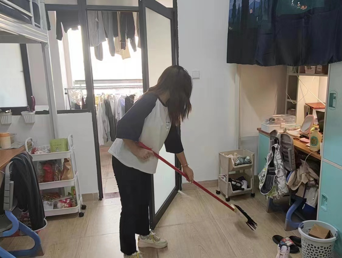 活动中,同学们积极响应、分工明确。同学们对宿舍进行全面清理打扫:打扫地面卫生,保持地面干净;整理桌面物品,保持桌面整洁;清理阳台厕所卫生死角,确保公共区域干净卫生;擦拭门窗,保持门窗的干净。活动过程中,同学们干劲十足、精力充沛,充分体现吃苦耐劳的品质和良好的精神风貌。