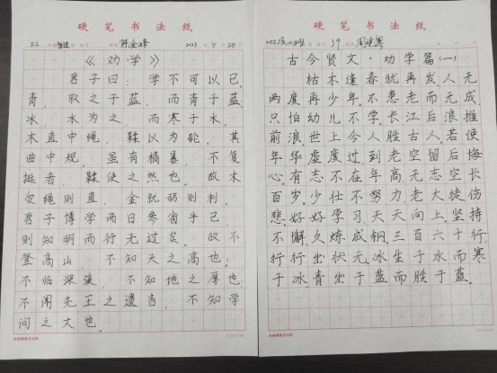 本次硬笔书法大赛指定内容《古今贤文˙劝学篇》(一)、《古今贤文˙劝学篇》(二)、《劝学》,同学们可任选一篇进行书写。同学们态度谦逊,认真谨慎,一笔一划尽显对书法的热爱。比赛结束后,一些优秀的作品被张贴在展板上进行展示,让更多的员工感受书法的魅力。这些作品或行云流水,尽显磅礴之气;或端正工整,秀气内敛,凸显文雅之风,它们通过不同的形式、不同的书体营造了百花齐放、异彩纷呈的效果。
