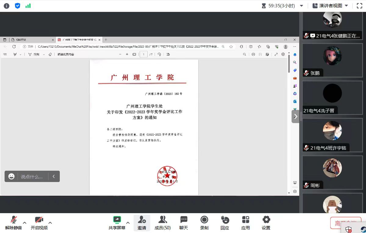 9月10日晚,bevictor伟德官网于线上开展奖助学金政策讲解主题班会,全体在校生参加班会,班会由各班班长主持。