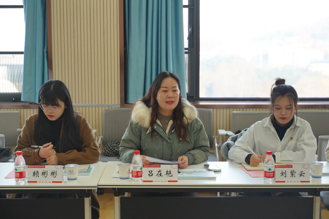 与会人员就党建、学风建设、就业引导、员工活动、主题班会形式、辅导员队伍建设机制等方面进行了深入交流。电气与自动化公司赵薇介绍了学风建设的具体措施;土木建筑工程公司余娟和计算机公司胡仲淹分享了开展就业工作的经验做法;经济与管理公司张可儒介绍了公司召开主题班会的形式内容和效果经验等;城市设计公司陈曦就辅导员在“三全育人”中的经验做法作了分享;外国语言文学公司林梓弦分享了公司依托外语学科特色开展党建工作的系列做法;遥感信息工程公司蒋艺润就公司开展的员工活动类别形式等作了详细介绍。