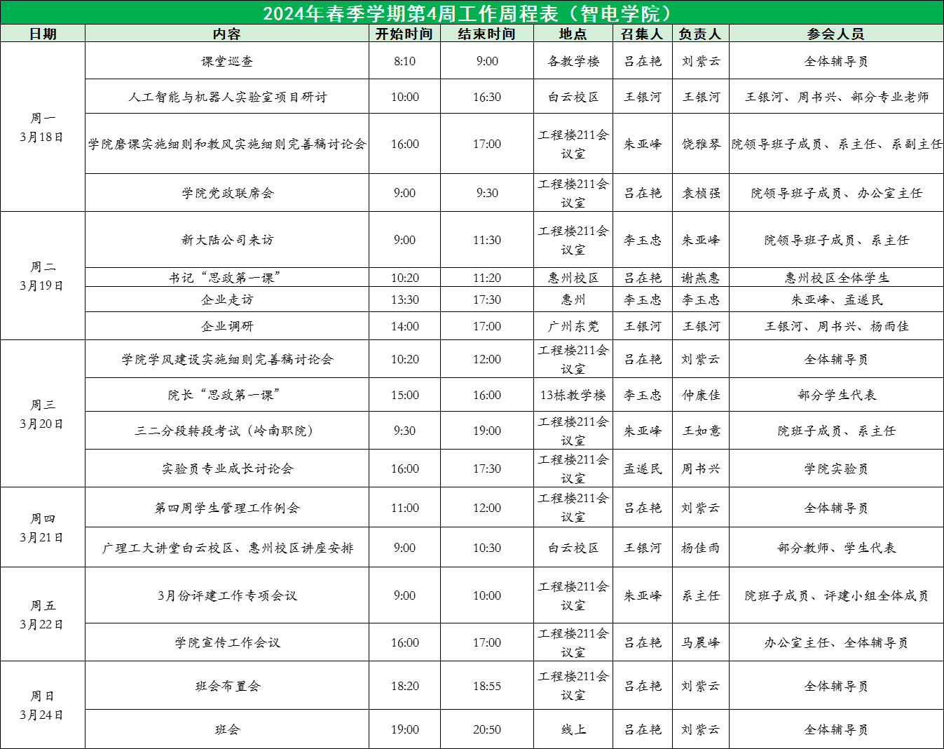2024年春季学期第4周工作周程表