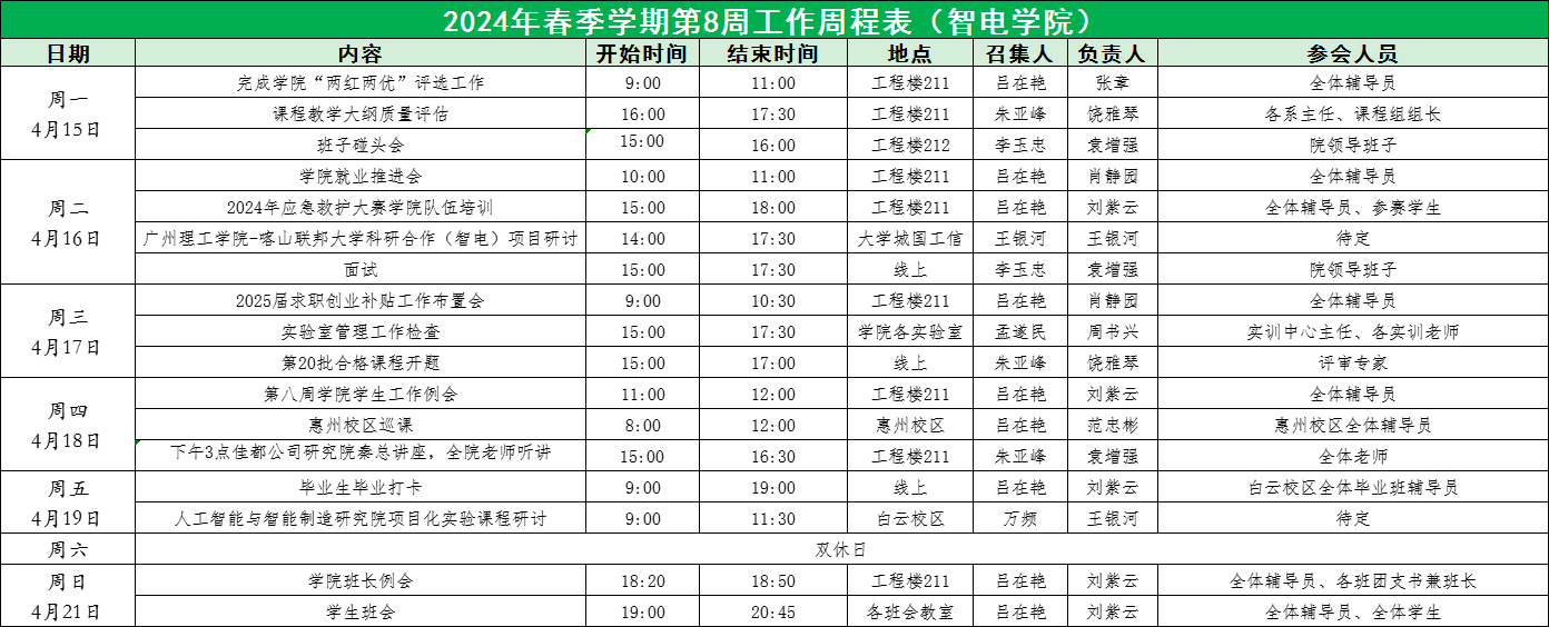 2024年春季学期第8周工作周程表