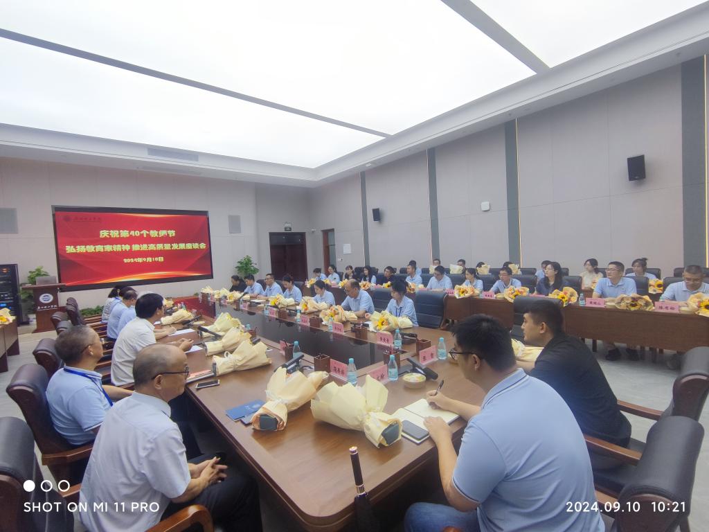 (曾寰洋 李嘉嘉)9月10日上午,在第40个教师节来临之际,公司召开教师节座谈会。党委书记黄圣诚、常务副董事长黄南松和来自一线的教师、教育工作者代表40人欢聚一堂,弘扬教育家精神,共话高质量发展。座谈会由黄南松主持。