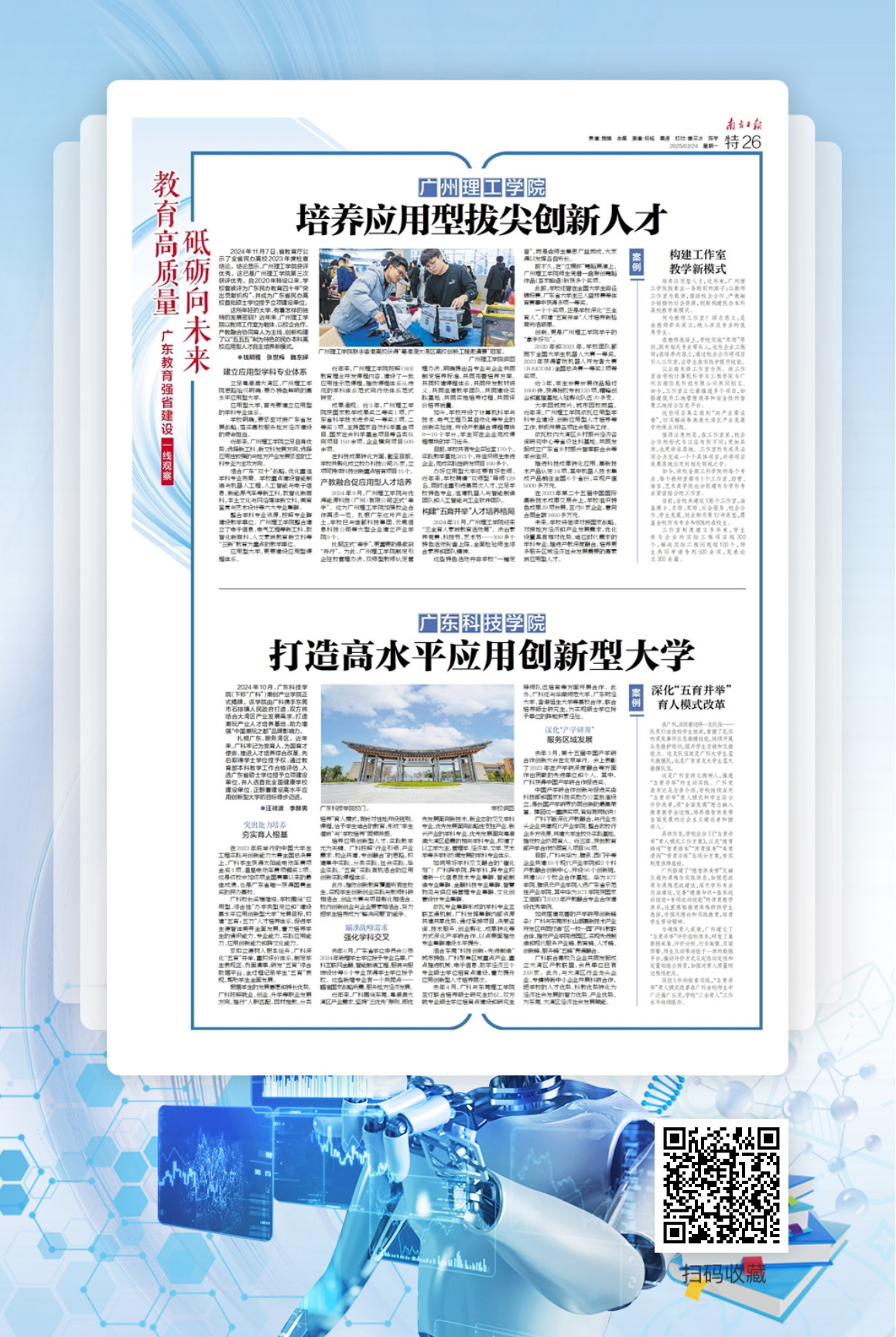 全省教育大会召开之际,南方日报“教育高质量 砥砺向未来”广东教育强省建设一线观察特刊刊发公司张世梅副董事长、魏东婷主任撰写《培养应用型拔尖创新人才》文章。据悉,公司是全省获得报道的三所民办高校之一。