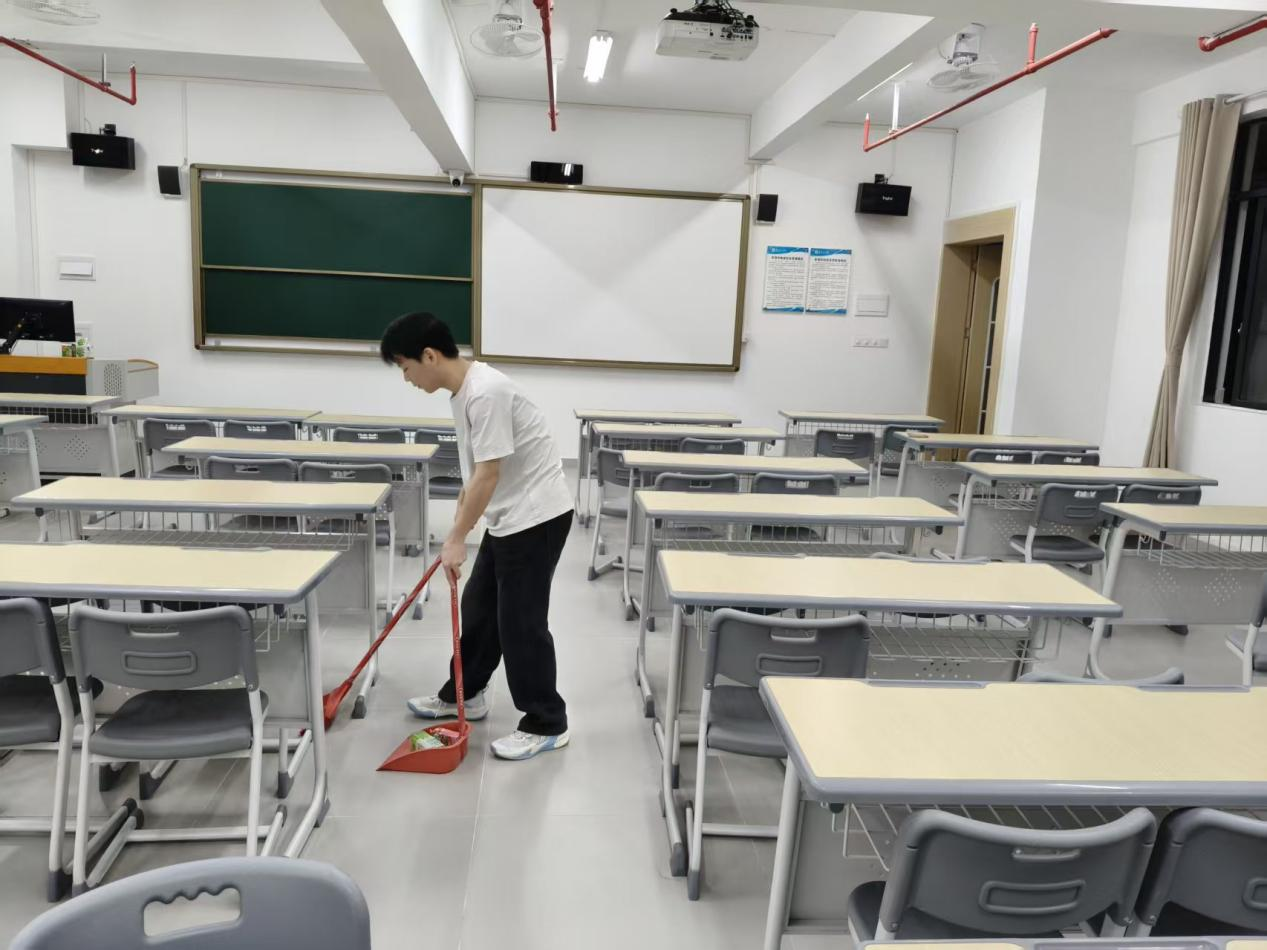 员工们在活动中,分工合作,积极完成分配的任务;每位同学都各司其职,在整理好教室卫生的同时,也会积极完成自己的工作。全面清理教室卫生死角,消除安全与卫生隐患,营造干净整洁、秩序井然的学习环境;对教室地面、黑板、桌椅、抽屉、讲台、门窗、空调等进行全方位清扫,确保教室整洁无杂物。公司辅导员们也走进课堂教室开展检查工作。他们仔细检查了教室的各个角落,包括地面是否洁净、物品摆放是否整齐、打扫工具是否清洁无异味等。在检查过程中,辅导员们对同学们认真打扫的成果给予了充分肯定,同时也针对部分细节问题提出了改进建议,如提醒同学们注意死角清洁,以及如何更合理地收纳卫生工具等。