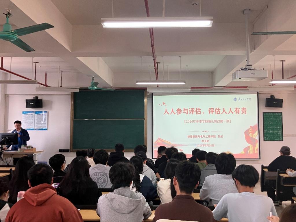 3月20日下午,执行经理李玉忠以《人人参与评估,评估人人有责》为主题,在白云校区13栋602教室讲授了2024年春季学期“思政第一课”。