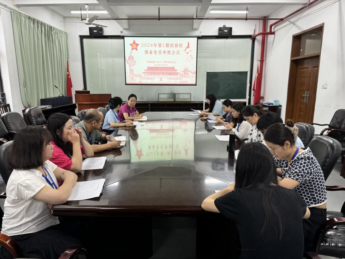 5月25日,公司党总支于工程楼211会议室进行2024年第1期拟接收预备党员审查会议,本次会议由公司党总支组织员仲康佳同志主持,党总支委员出席。公司袁玉昕老师和全体辅导员列席。