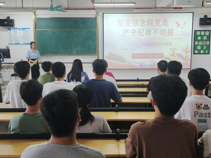 6月6日下午,bevictor伟德官网员工第一党支部在13-601教室开展题为“坚定信念跟党走 严守纪律不动摇”的党纪学习教育专题党课,员工支部书记刘紫云主讲,支部全体党员参加。