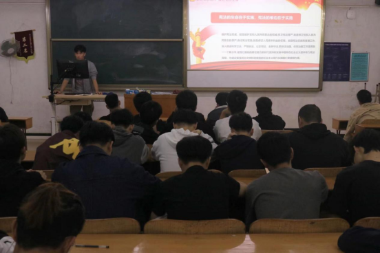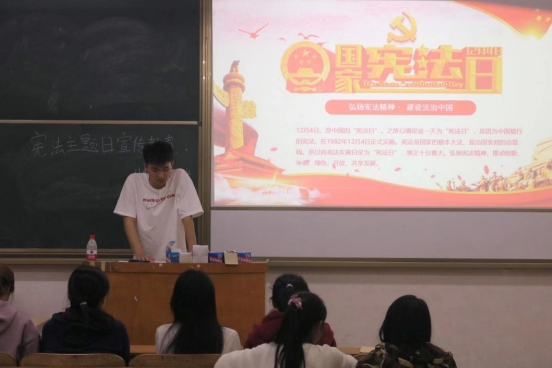 12月4日是第八个国家宪法日,为了深入开展尊崇宪法,学习宪法,遵守宪法,维护宪法,大力弘扬宪法精神,不断增强广大师生宪法意识,11月28日晚,公司全体辅导员组织员工在6栋和13栋教学楼召开国家宪法日宣传主题班会,各班班干主持会议。