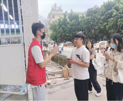活动期间,志愿者们在服务岗宣传疫情防控相关知识,提醒同学们佩戴口罩出入站点,用信念与行动,成为了校园里一道靓丽的风景线。