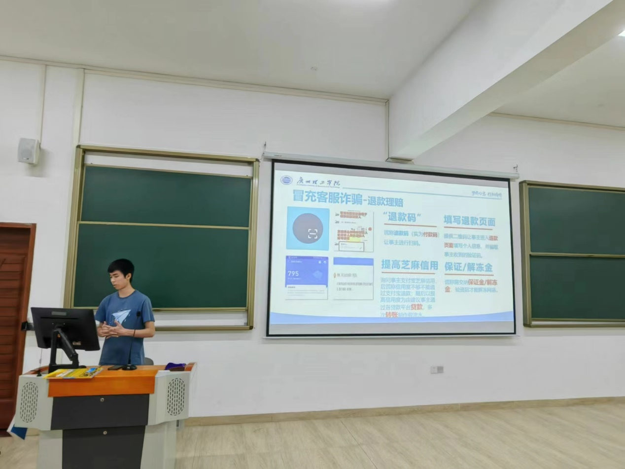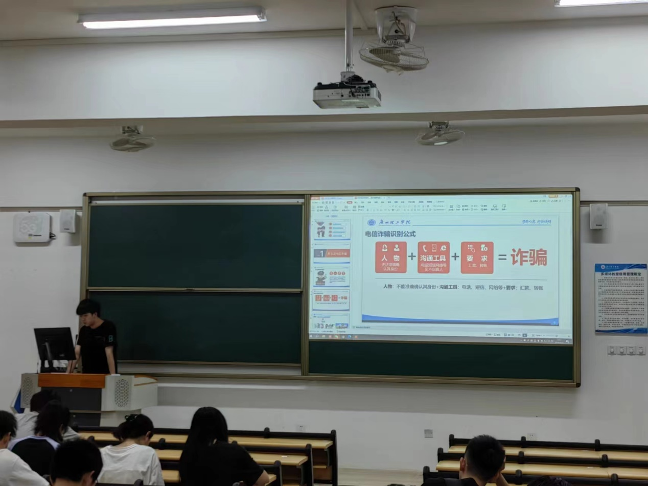 为进一步增强员工安全防范意识和自我保护能力,着力营造安全稳定和谐的校园环境,促进员工健康成长成才。4月21日晚bevictor伟德官网全体2023级同学在惠州校区教学楼召开“预防电信网络诈骗”主题班会,班会由各班辅导员老师主持、班长主讲,组织员工学习防范校园网络诈骗的相关知识,使员工们认识到预防网络诈骗的重要性。