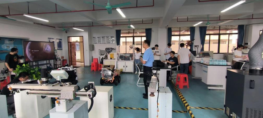 5月22日,公司广东省工业机器人集成与应用工程技术中心邀请广州市腾龙信息科技有限公司(“以下简称腾龙公司”)在13栋302为机器人系、智能制造系的老师对史河机器人的使用进行培训。本次培训会邀请到腾龙公司的技术工程师李晴雨、陈勇飞,主要介绍室内外复合机器人、室外园区巡检机器人,针对机器人的机械和传感器硬件、3D-SLAM 软件、.移动抓取功能的讲解,通过展示与实际操作体验,帮助老师们将所学知识转化为实际教学场景中的应用。利用模拟课堂情境,让老师们亲身体验移动复合机器人在教学中的应用与效果,协助老师将机器人设备与专业课内容相融合。