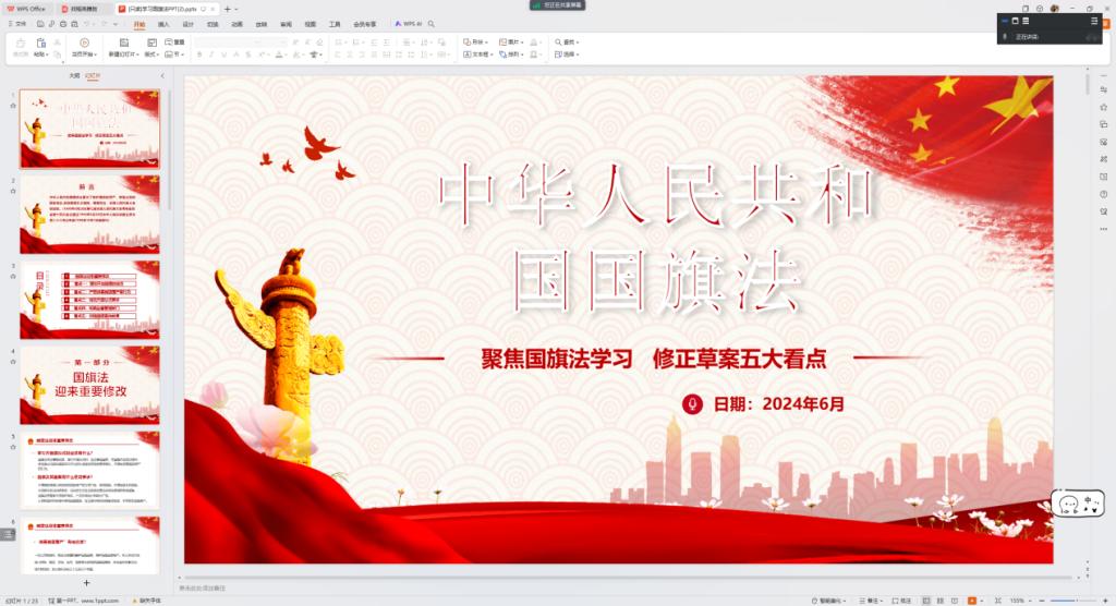 在班会上,各班班长首先向同学们深入介绍了国旗的悠久历史和丰富的象征意义,使同学们深刻认识到国旗不仅是国家的象征和标志,更代表着国家的尊严和荣誉。随后,班长们详细解读了《中华人民共和国国旗法》的相关内容,让同学们了解了升挂国旗的规范和要求,以及违反国旗法可能面临的法律责任。本次班会还着重介绍了新修订的《中华人民共和国国旗法》的背景和意义,强调了国旗作为国家象征的重要性,以及此次修订在国旗使用、管理和保护方面的深远影响。