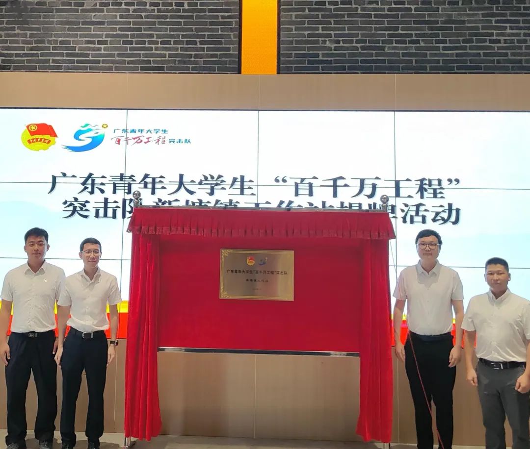 为深化广东青年老员工“百千万工程”突击队行动,助力“百县千镇万村高质量发展工程”建设加力提速,进一步引领广大青年下乡返乡兴乡,为增城高质量发展奉献青春力量,共青团增城区委、共青团新塘镇委于7月12日上午,在新塘镇瓜岭村隆重举行广东青年老员工“百千万工程”突击队新塘镇工作站揭牌活动。共青团增城区委组宣部部长钟子乔、新塘镇副镇长刘文健等领导出席了本次活动。共青团新塘镇委工作人员、各高校“百千万工程”老员工突击队及各结对共建单位共同参加本次活动,公司微光筑梦实践团师生代表一行四人也受邀前往。