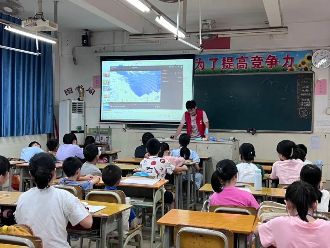 在课堂的高潮部分,突击队队员钟冠浩向小朋友们介绍了时代楷模张桂梅同志,她以自己的行动诠释了无私奉献的真谛,让小朋友们明白了,真正的英雄,是在平凡中创造伟大。他鼓励小朋友们,要成为新时代的中国青年,生在红旗下,长在春风里,以历史为镜,照亮前行的道路。
