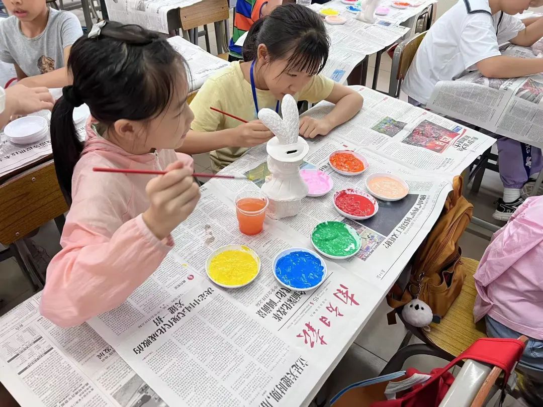 突击队队员简文烯特意为小朋友们准备了石膏娃娃,鼓励他们施展自己的想象力为其着色。课堂中充盈着小朋友们的欢声笑语,大家都沉醉在创作当中,展现出了他们别具一格的艺术天赋。此次绘画课,不但让小朋友们在幻想的海洋中畅游,还培育了他们的创造力与动手实践能力。