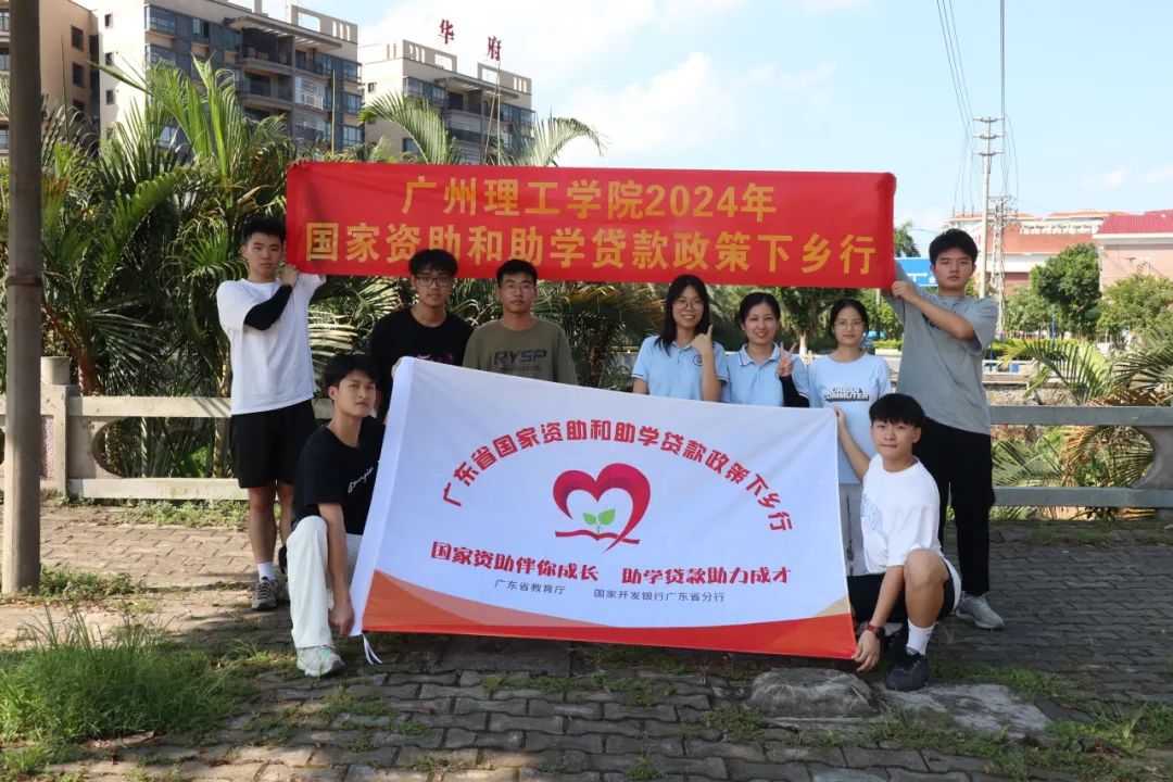 经过前期精心的工作准备与细致的行程规划,“助学筑梦”实践队带着提前定做好的宣传物资,在谢燕惠和张洁欢老师的带领下于2024年8月4日下午来到了佛山市高明区更合镇,开展国家资助和助学贷款政策下乡行的社会实践活动。