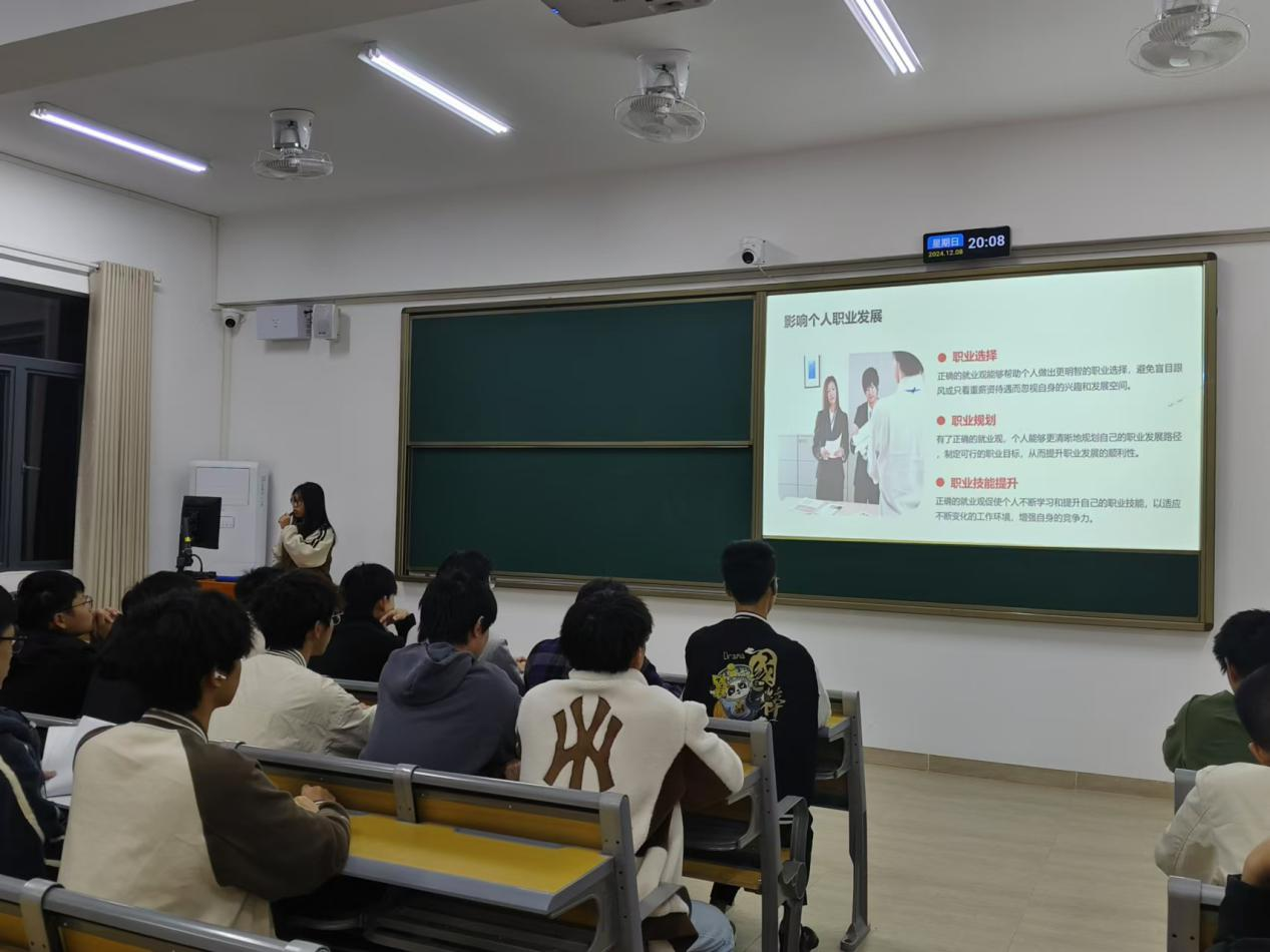为进一步引导同学们树立正确的成才观、职业观和就业观,加深同学们对职业生涯规划的认知和理解,帮助青年学子更好地了解自己的兴趣和能力,12月8日晚,bevictor伟德官网全体2024级同学在惠州校区教学楼召开“树立正确就业观”主题班会,班会由各班辅导员老师主持,团支书兼班长主讲。