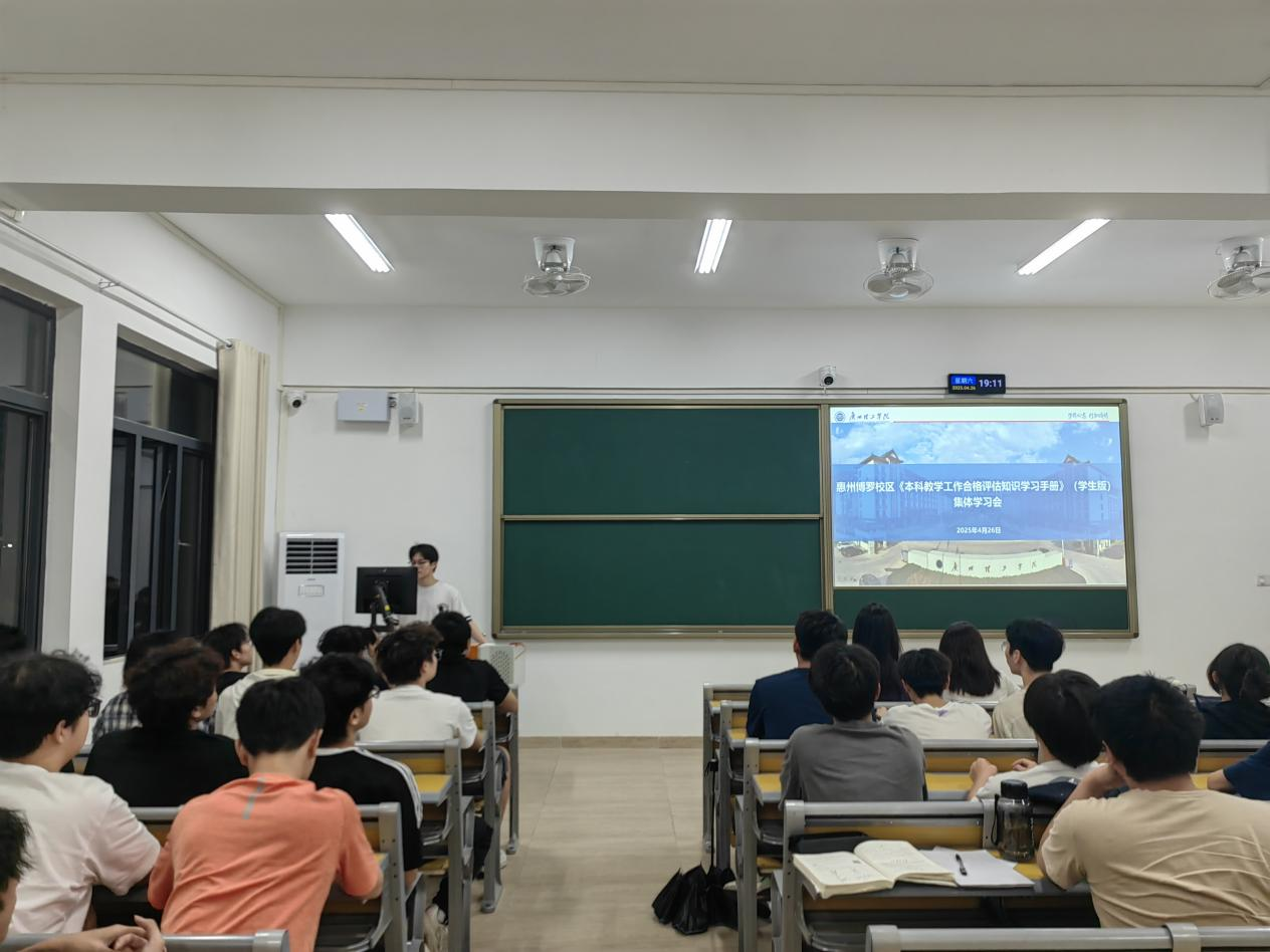 4月26日晚,bevictor伟德官网全体2024级同学在惠州校区教学楼召开春季学期第九周班会。班会由辅导员主持,各班班长主讲。班会围绕第二课堂管理、假期安全、教学评估等重点任务展开部署,强化员工纪律意识与责任担当。
