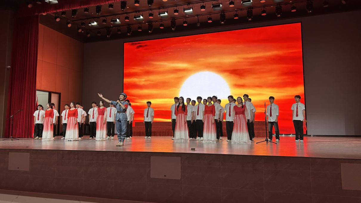 在正式诵读环节,同学们身着整齐的服装,精神饱满地站在舞台上,他们时而低沉吟诵,时而高声呐喊,将诗词中的壮美河山、豪迈情怀演绎得淋漓尽致。诵读接近尾声时,全体队员齐声高呼“请党放心,强国有我”,声音一浪高过一浪,震撼人心,表达了新时代青年对党和国家的忠诚与担当,赢得了现场观众经久不息的掌声。