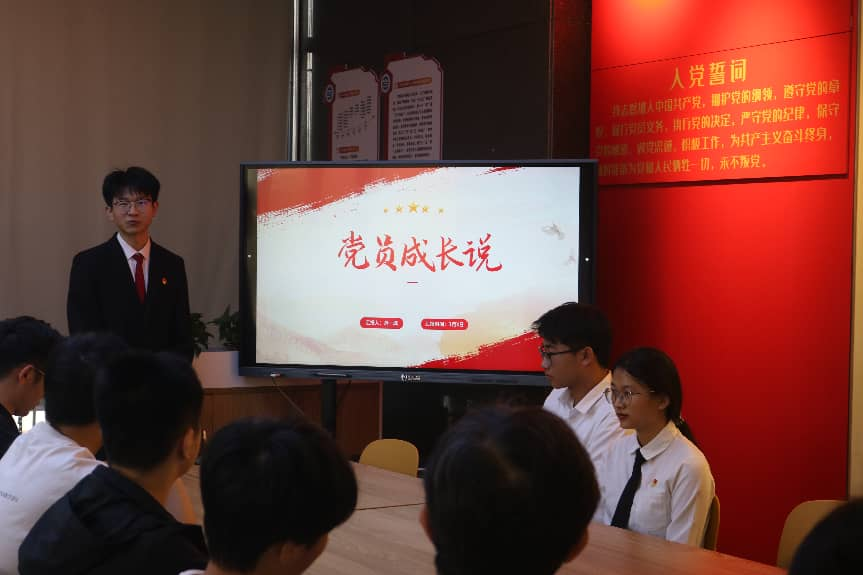 活动现场,许淑如、林泽明等同学结合精心制作的PPT,围绕个人情况、业绩荣誉、成长历程、经验方法等方面,进行了每人10分钟的详实分享。真挚的故事、实用的经验,让在场听众收获满满。除主题分享外,活动还设置了多项特色环节:开展入党启蒙教育,普及党的基础知识;组织结对帮扶,为同学们答疑解惑;围绕时政热点开展专题研讨,从多维度丰富活动内涵,切实夯实全体参会人员的思想根基。
