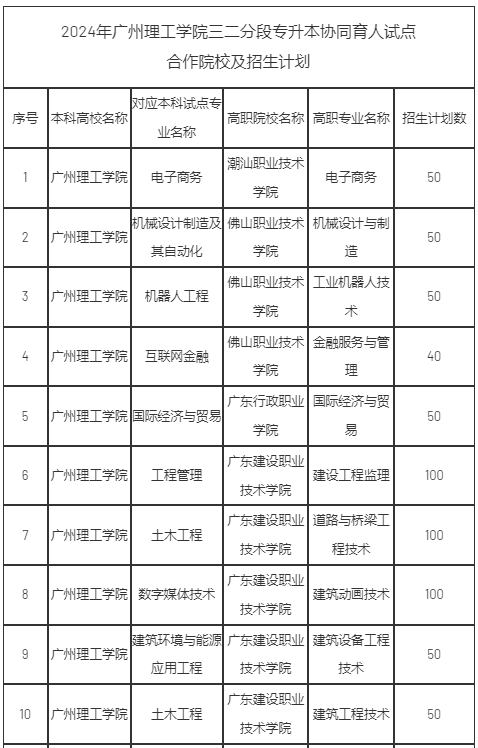 2024年韦德官方网站三二分段专升本协同育人试点项目合作院校及招生计划