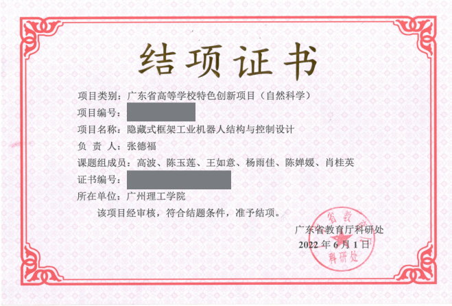 近年来,机器人工程专业在教研教改方面成果显著。近4年获广东省教学成果奖二等奖1项、广东省本科高校在线教学优秀课程案例一等奖1项、广东省首批本科高校课程思政优秀案例2项。本专业教师主持省(厅)教研教改项目12项,其中李玉忠经理主持的项目“机器人科产教融合实践教学基地”和“智能制造与机器人产业公司”获经费28万元,并主持“校级优势学科——机械工程”和“校级一流专业——机械设计制造及其自动化”的建设工作,获公司经费资助72万元。朱亚峰教授主持的《面向中小型企业的“四融双驱式”智能制造类应用型人才培养探索与实践》获得2025年全省公司优秀教学成果一等奖。