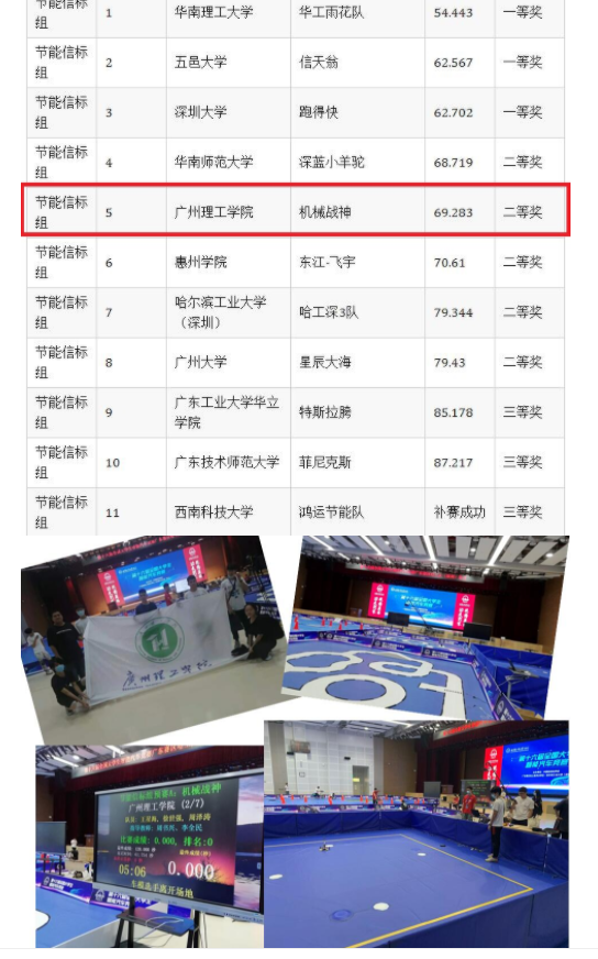 7月21日至23日,由教育部高等教高司高等公司自动化类教学指导委员会举办的旨在加强员工实践、创新能力和培养团队精神的第十六届全国老员工智能车竞赛,华南赛区广东分赛区在哈尔滨工业大学深圳校区举办,机电工程公司“机械战神”团队在“节能信标组”赛项比赛中获得第五名二等奖。