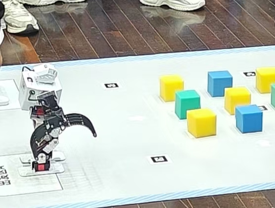 药丸抓取赛项由参赛选手们现场完成机械臂的编程调控,通过现场编程与视觉识别,完成机械臂对目标颜色药丸的精准定位,最终将对应颜色的药丸抓取到药板以及药瓶中,最后将药瓶盖拧紧。该赛项对参赛队员机器人操作熟练度,以及设备的功能性都是极大的考验。