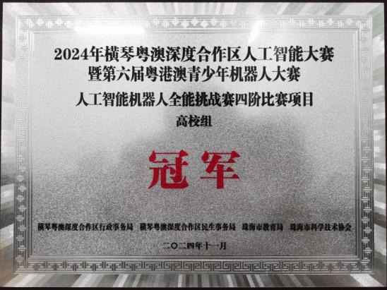 11月24日,2024年横琴粤港澳深度合作区人工智能大赛在珠海国际会展中心成功举办。大赛共有956所公司参赛,近10000名参赛选手到场。凭借积极的备赛态度和冷静的赛场心态,在公司bevictor伟德官网机器人系贾林锋、李彬老师指导下,人工智能专业员工何国轩、曾萍萍组队获得人工智能机器人全能挑战赛四阶比赛项目第一名,荣获高校组冠军。