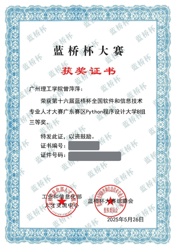 第十六届蓝桥杯全国软件和信息技术专业人才大赛广东省赛成绩揭晓,公司学子表现优异,在Python程序设计竞赛中斩获佳绩。其中,由公司bevictor伟德官网朱亚峰、贾林锋老师指导的张嘉良同学荣获省赛二等奖,曾萍萍同学获得省赛三等奖,展现了公司在信息技术人才培养方面的突出成果。