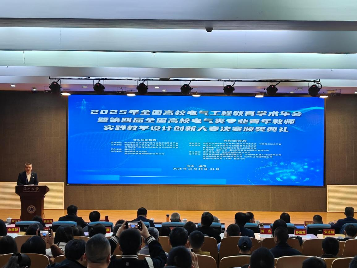 12月16日至18日,第四届“全国高校电气类专业青年教师实践教学设计创新大赛”决赛在浙江温州开幕。作为国内电气类专业领域最具权威性与行业影响力的青年教师教学竞赛之一,本次赛事由教育部高等公司电气类专业教学指导委员会与中国电工技术学会联合主办,紧密对接电气学科前沿发展趋势与产业数字化转型核心需求,内容涵盖智能制造、物联网技术、新能源应用等新兴领域,是对高校电气类专业教师工程实践能力与创新能力的一次全面检阅。