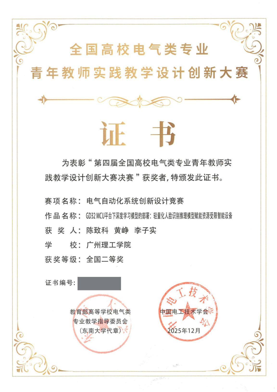 本次竞赛以《GD32 MCU平台下深度学习模型的部署:轻量化人脸识别推理模型赋能资源受限智能设备》项目为实践教学案例,生动展示了“以赛促学、以赛促教、以赛促创”的教育理念和创新成果。项目围绕真实应用场景,将神经网络控制、传感器集成、轻量化模型设计、嵌入式系统部署等前沿技术深度融入教学环节,实现电气工程、人工智能、人机交互等领域的跨学科融合。通过“真实需求—系统创新—原型验证”的闭环迭代机制,重构实践教学流程,充分体现以“问题导向、项目驱动、能力培养”为核心的教学新范式。