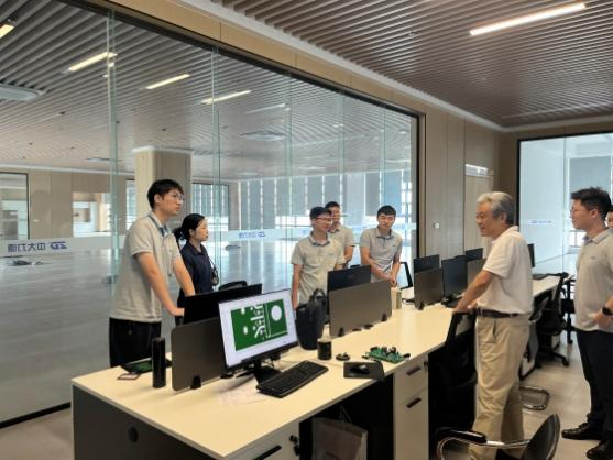 挂牌仪式后,校方一行实地考察了中大力德公司智能仓储、机器人装配测试车间和产教融合实训基地。副经理孟遂民、朱亚峰与工程师探讨智能装备技术瓶颈及应用场景,并走访了正在岗位工作的公司25届毕业生机器人班的张驰等同学,倾听他们在工作中的体会和收获,征求他们对公司人才培养方案课程设置的建议。