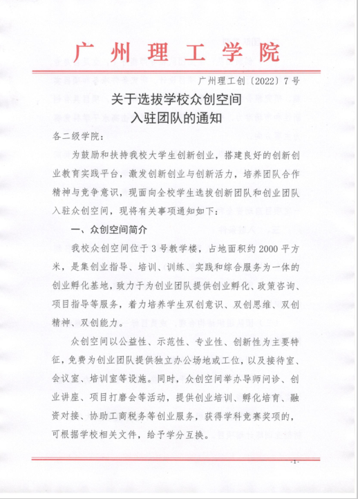 关于选拔公司众创空间入驻团队的通知