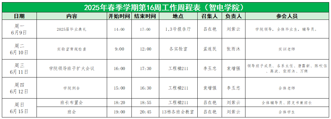 2025年春季学期第16周工作周程表